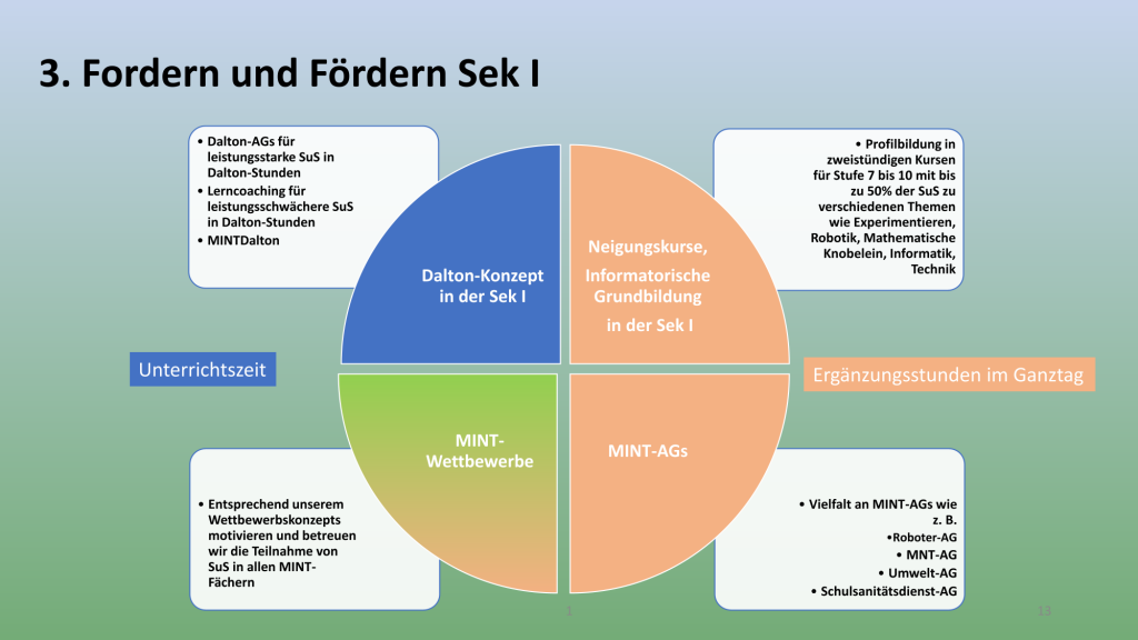 Mittel- bis langfristig soll die Auszeichnung „Schule der Zukunft“ angestrebt werden. Dazu sollen die Projekte kontinuierlicher Teil des Schullebens werden und inhaltlich mit den Unterrichtsvorhaben einzelner Fächer verknüpft werden. (https://www.sdz.nrw.de/auszeichnung/auszeichnungskriterien)