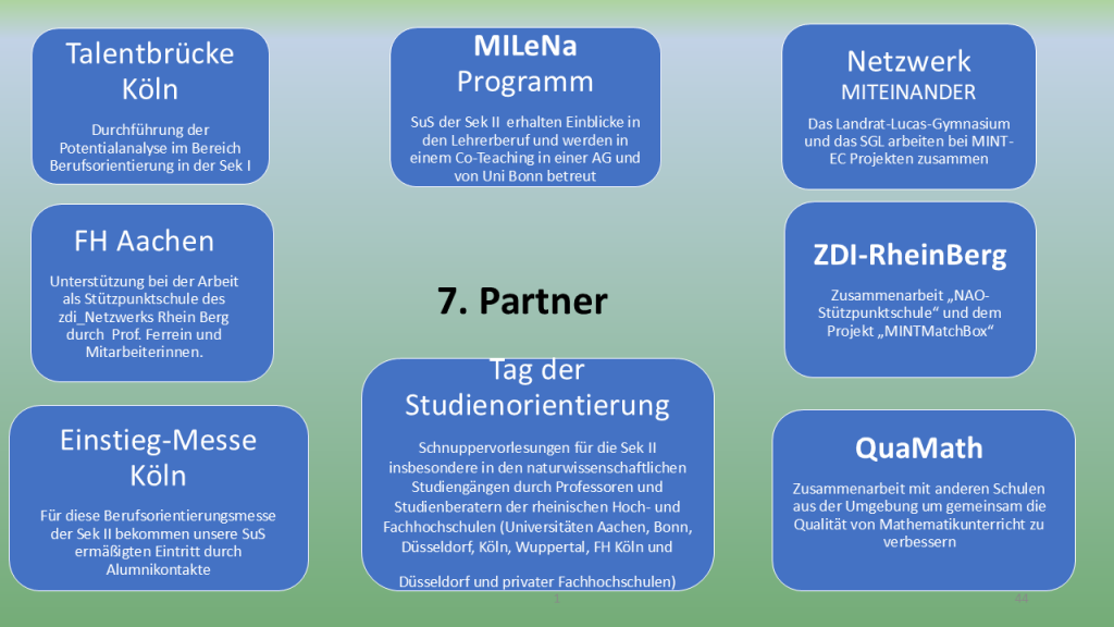 Dabei handelt es sich um fünf Teilstipendien und drei Vollstipendien. Über die Vergabe dieser Stipendien entschiedet das Bildungswerk NRW. Voraussetzung ist, dass du 1 LK im MINT-Bereich gewählt hast.